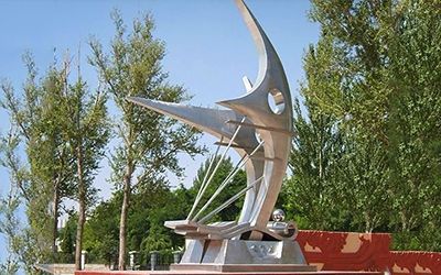 幾何塊面?玩兒的是抽象派!說白了,就是用方方、圓圓、三角這些基本幾何體,拼出個大致意思。啥材料都能玩這套,但目前最主流的是兩種?:金屬家族(不銹鋼板、鍍鋅板、鐵板),或者玻璃鋼。
